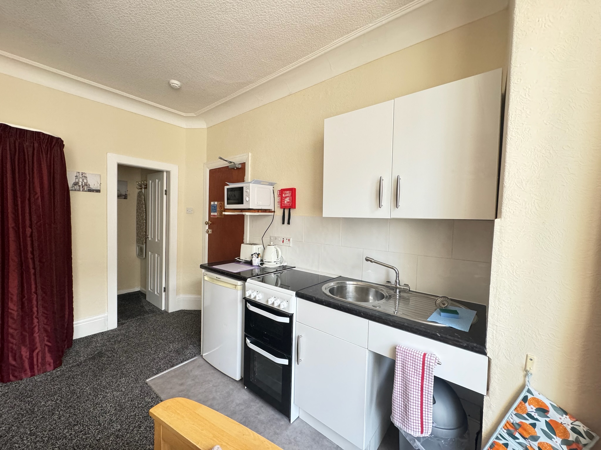 Flat 1 is a ground floor Studio flat and sleeps 2 people. There is a double ‘wall’ bed, futon and kitchen area. You will find an en-suite with walk in shower (seat can be provided for shower). Please see the photos above.